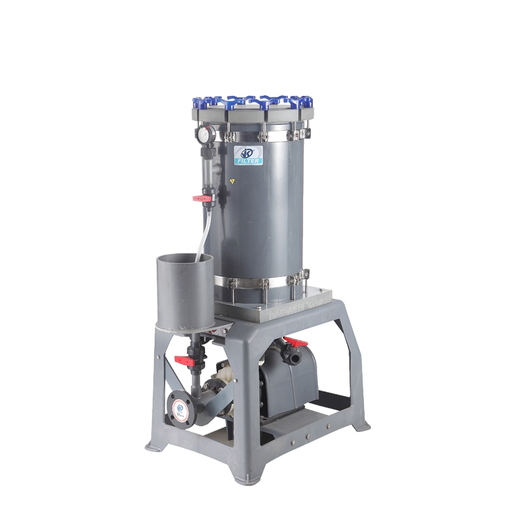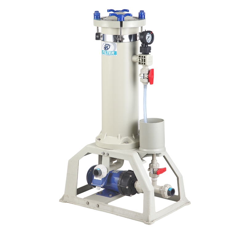 全自動過濾機適合鉻酸鍍液循環過濾用;使用溫度不能超過70℃ ;連續鍍PVC過濾器濾桶部分采用PVC材質,泵浦部分采用 PVDF材質;濾材部分采用鎖帽式設計,密封性好。過濾面積廣,藥液接觸部分無金屬部件;高精密過濾、過濾面積廣、效率高、操作簡單、清洗容易。表面經特殊燒毛處理,有效防止纖維脫落污染濾液,蓬松均勻的三維過濾層對固體及膠體顆粒有極高的捕捉能力,高強度的長纖維使濾袋的過濾效率穩定,使用壽命更長。濾袋參照歐美國際標準生產,符合國內制藥行業GMP要求和FDA要求,是袋式過濾系統中的重要過濾元件,濾袋的品質決定過濾效率。